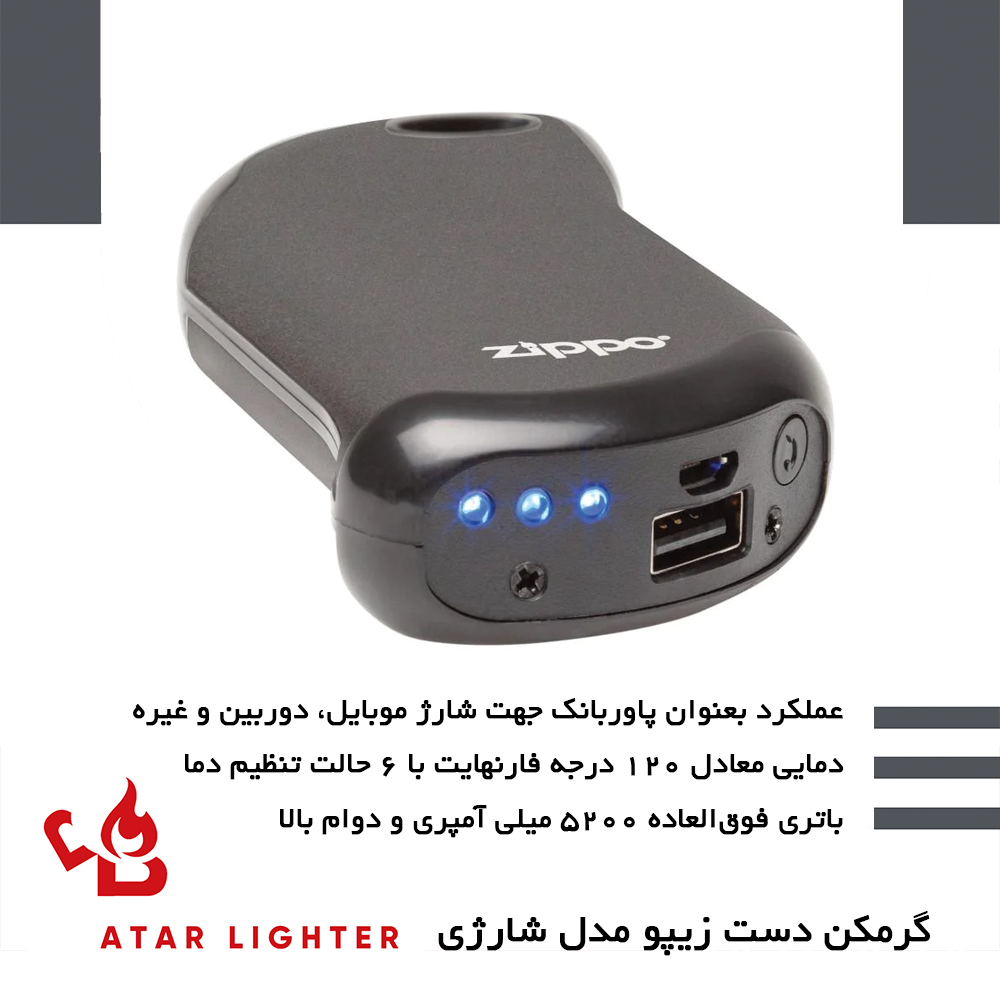 گرمکن دست و پاوربانک زیپو اصل 2007340 مدل 9S مشکی