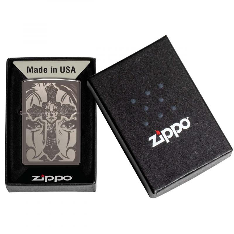 فندک زیپو اصل 48411 بدنه پولیش طرح خالکوبی