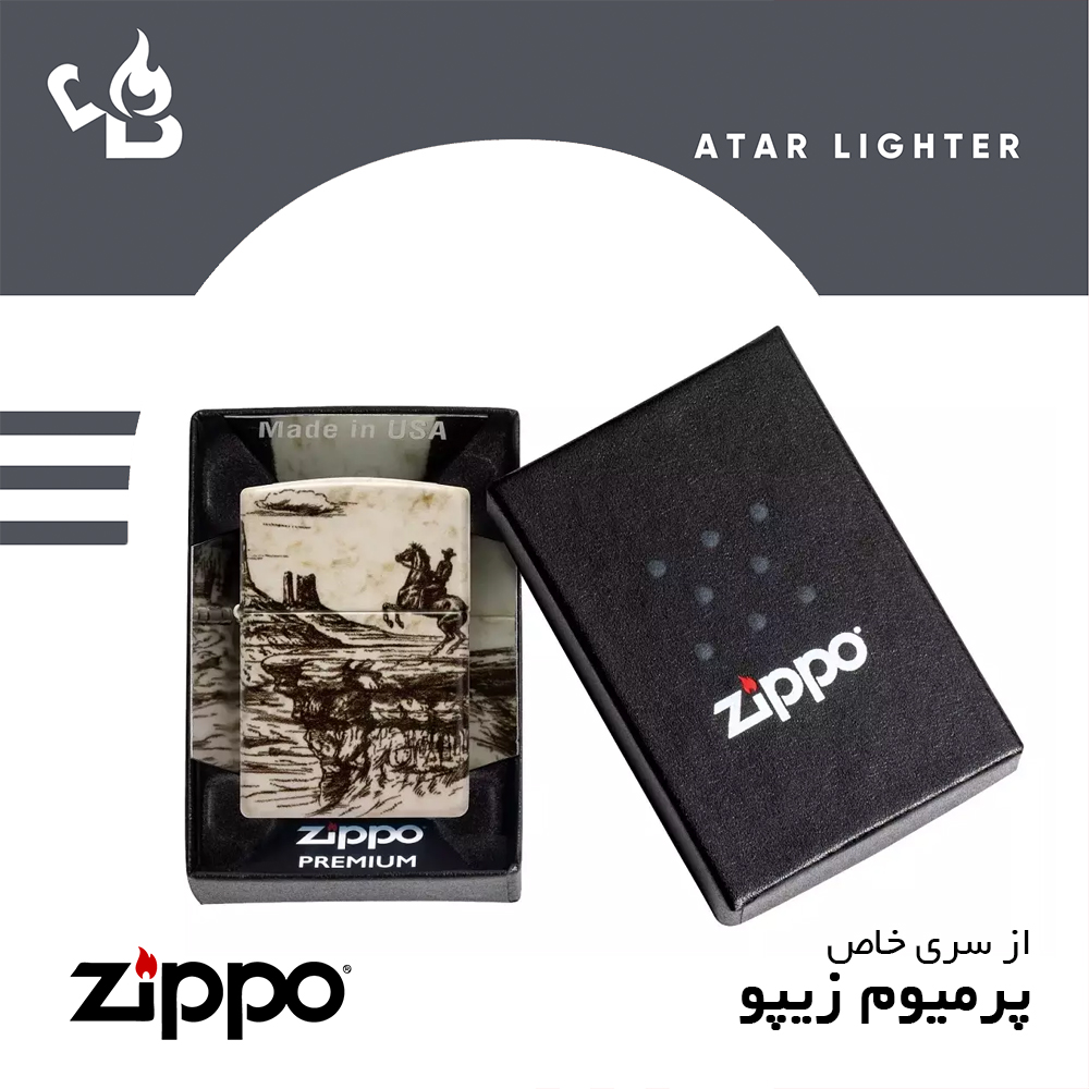 فندک زیپو اصل 48518 طرح وسترن