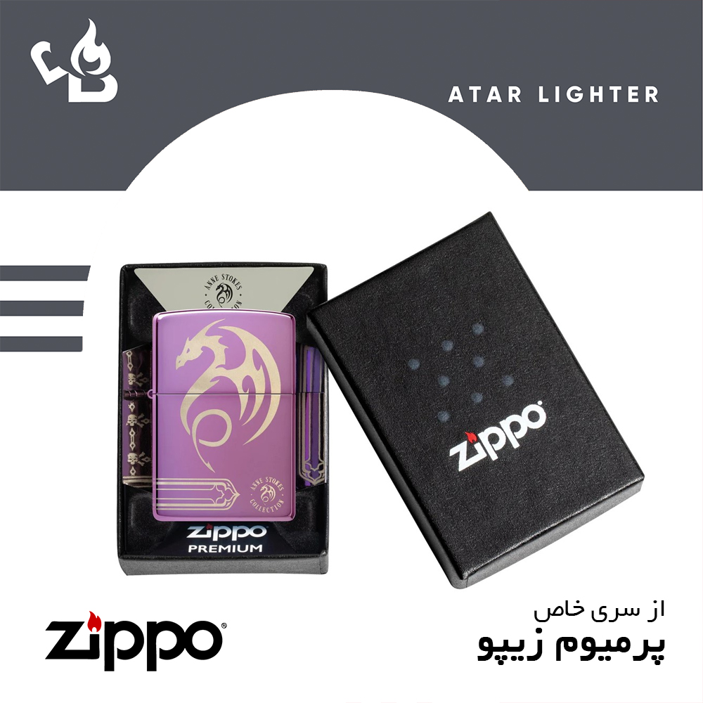 فندک زیپو اصل 48574 بدنه پولیش طرح اژدها