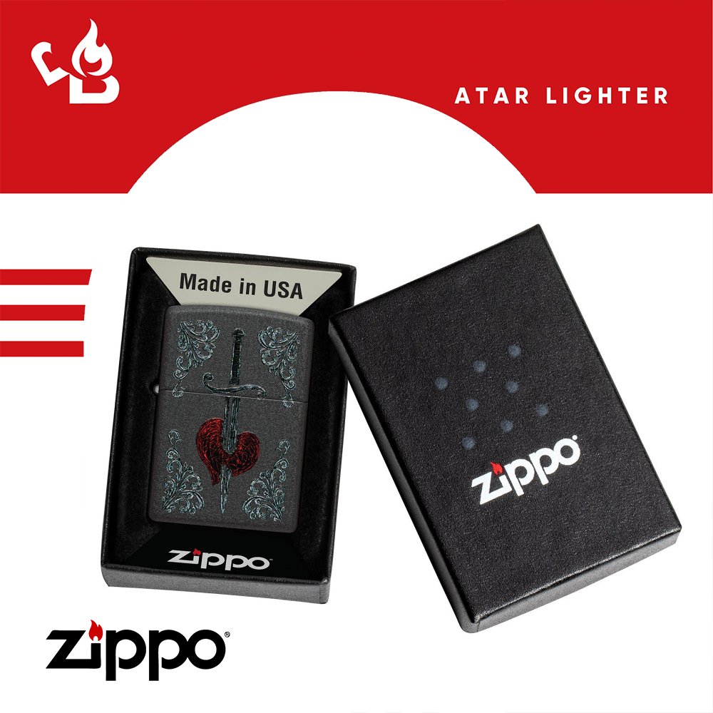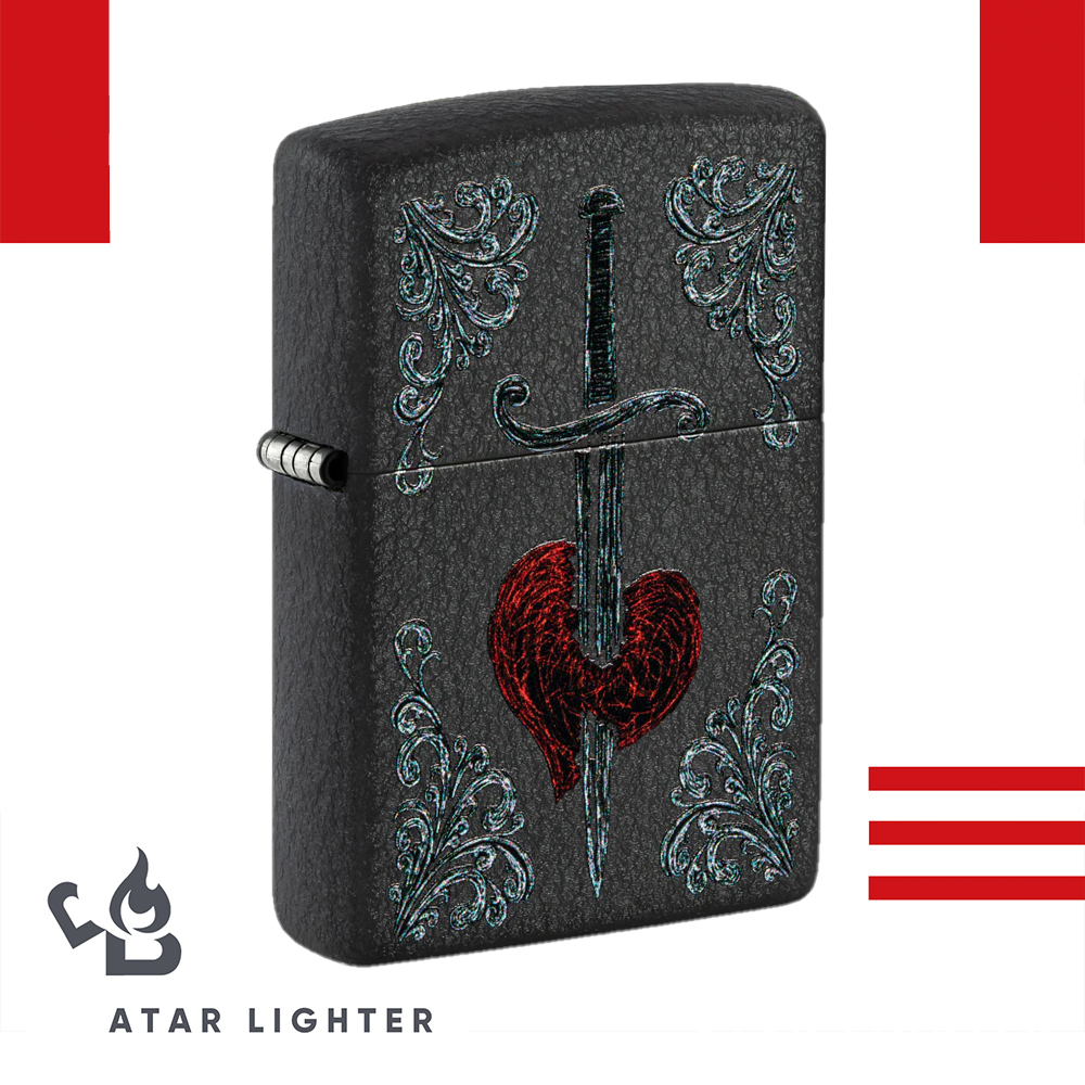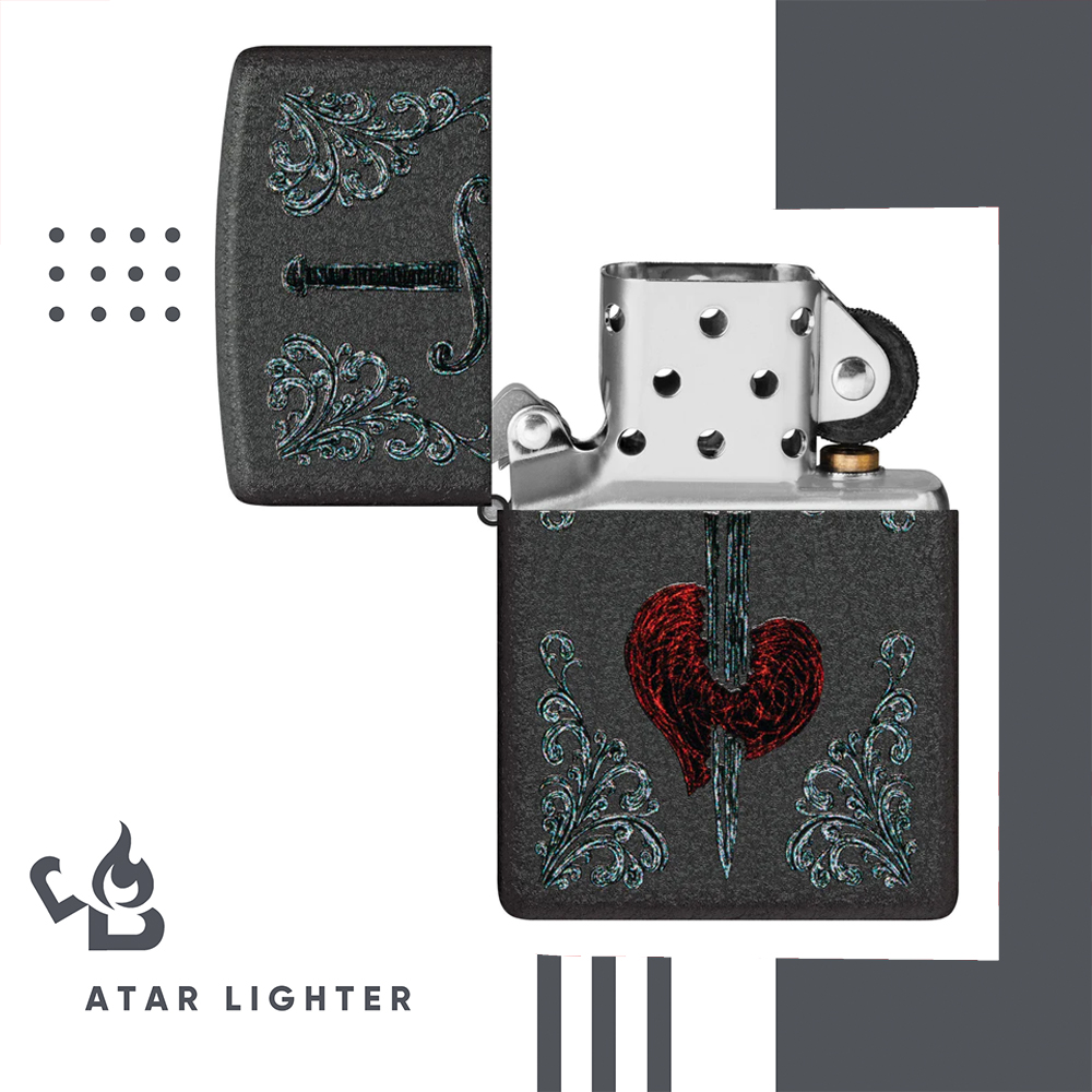 فندک زیپو اصل 48617 بدنه مات طرح خنجر و قلب