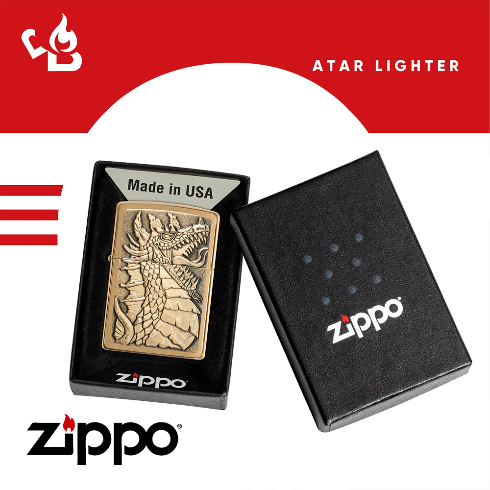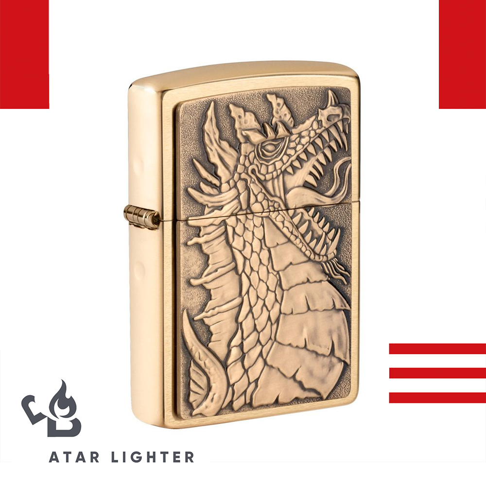 فندک زیپو اصل 49297 برنجی طرح اژدها