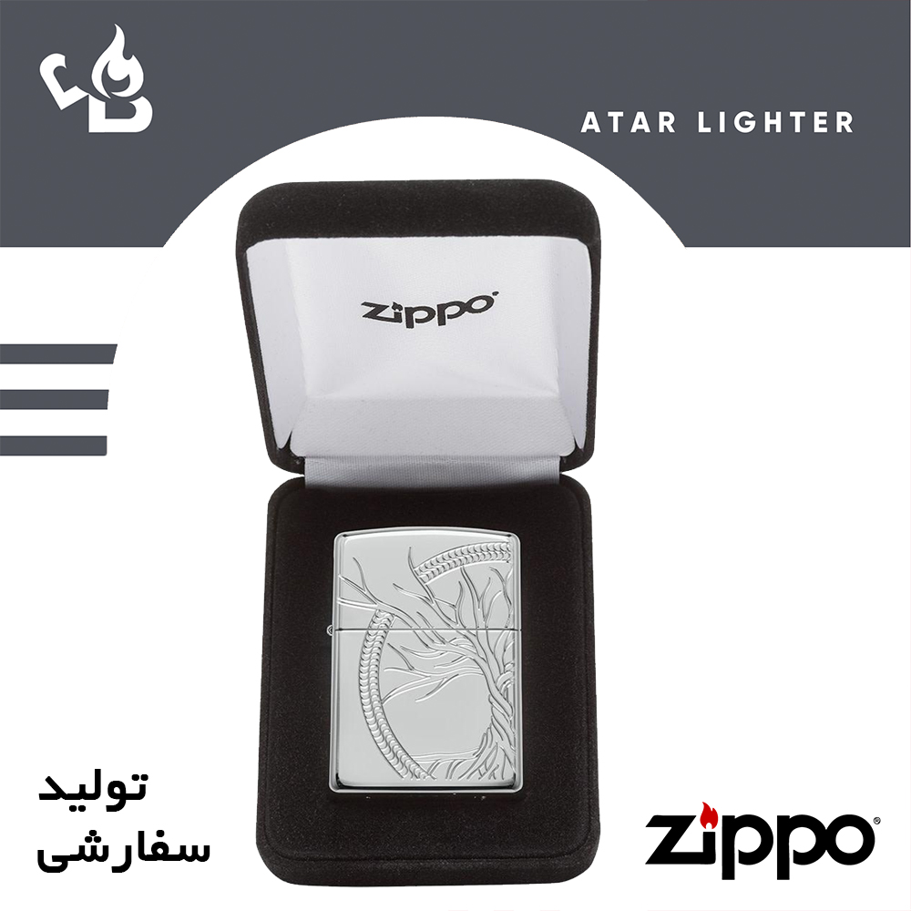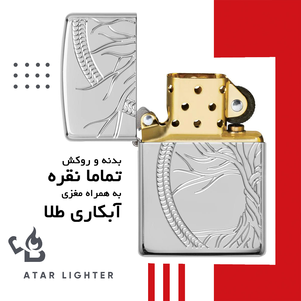 فندک زیپو اصل 49552 درخت زندگی کلکسیونی نقره تولید سفارشی