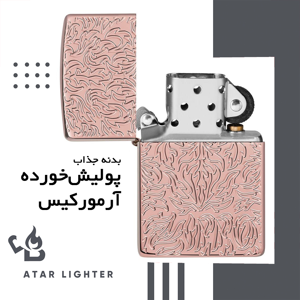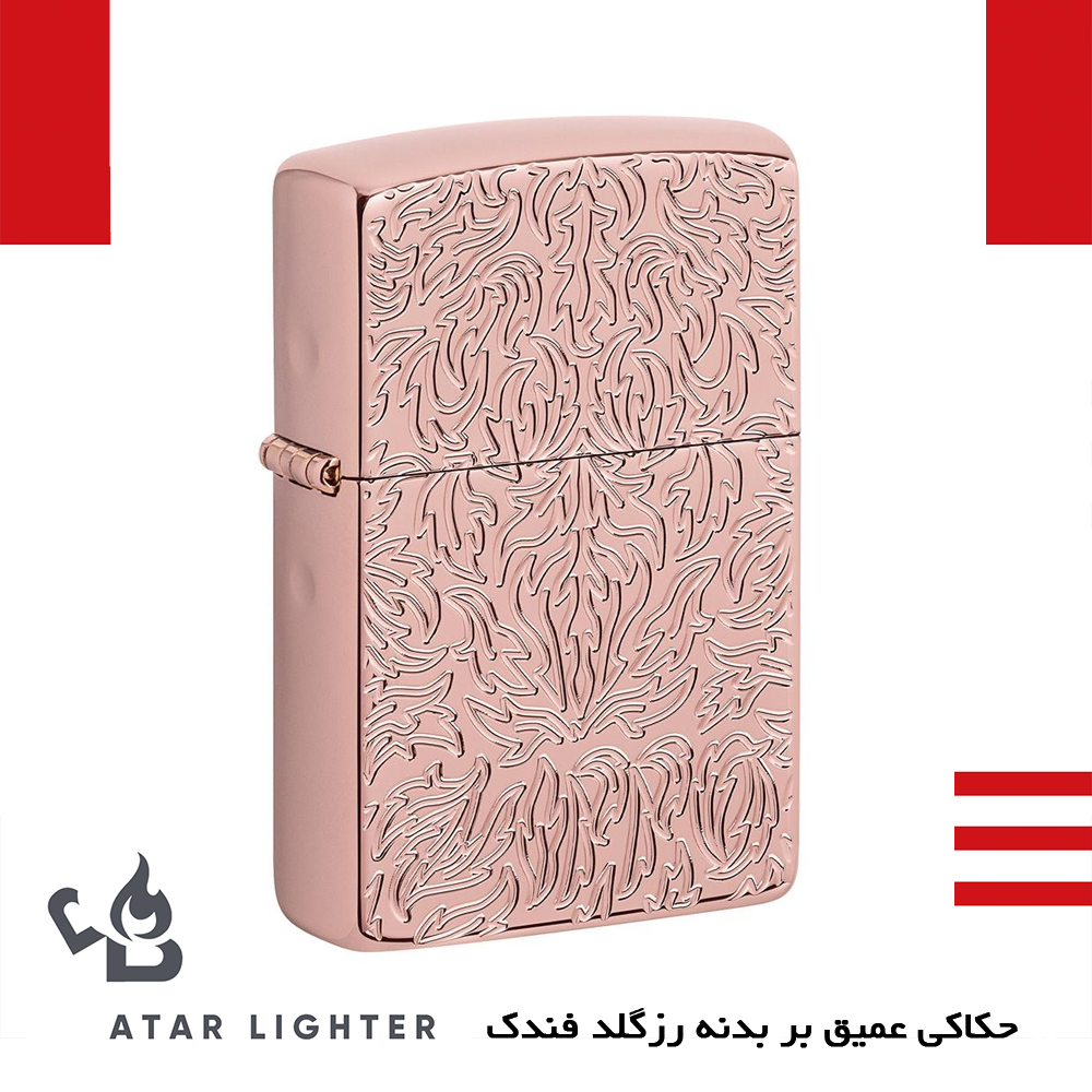 فندک زیپو اصل 49703 رزگلد آرمورکیس با حکاکی عمیق