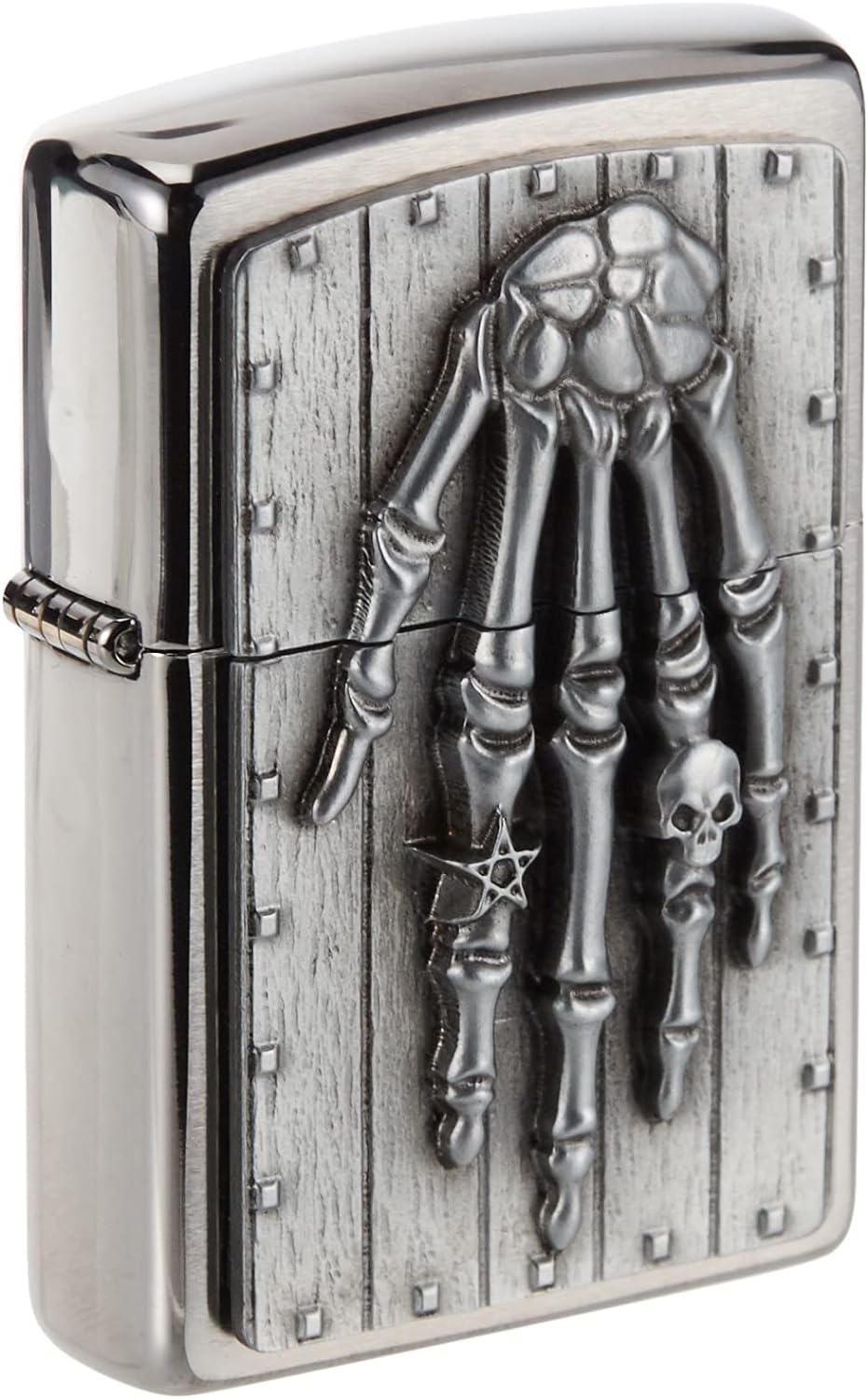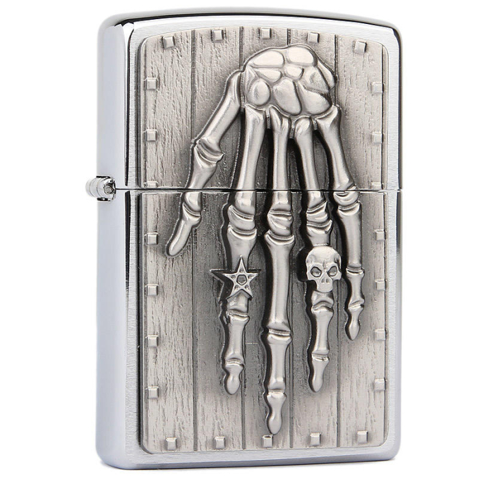 پلاک برجسته طرح اسکلت دست بر بدنه فندک