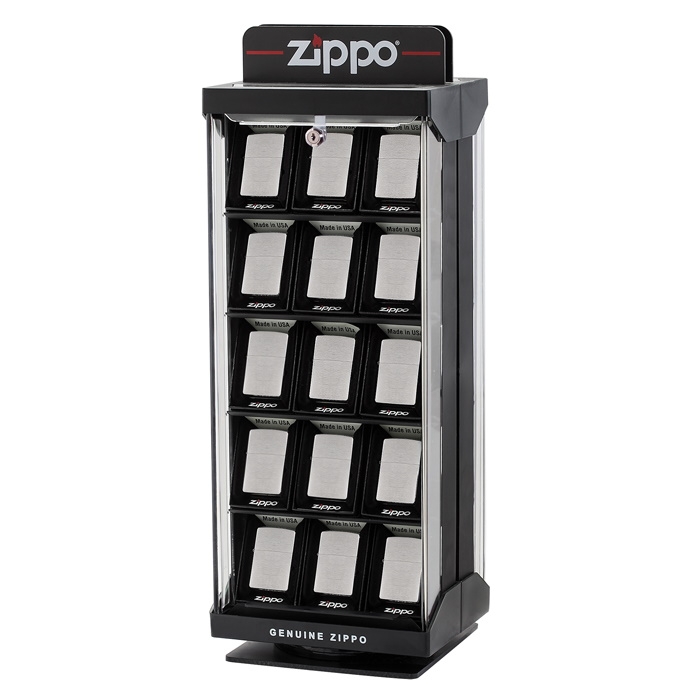 Genuine Zippo productCountertop Display RotatesHolds 30 Zippo Lighters(2) Clear Acrylic Viewing PanelLockable Front & Rear Panel - 2 Keys-استند فروشگاهی 30 عددی فندک زیپو-هر سمت دارای 15 عدد جای خالی